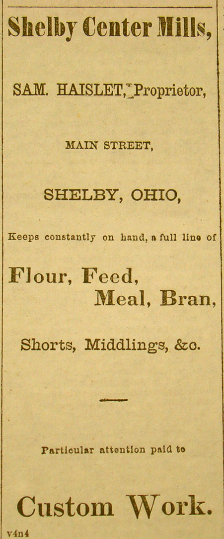 the Shelby Center Mills. Mr. Haffstodt is engaged as his miller,