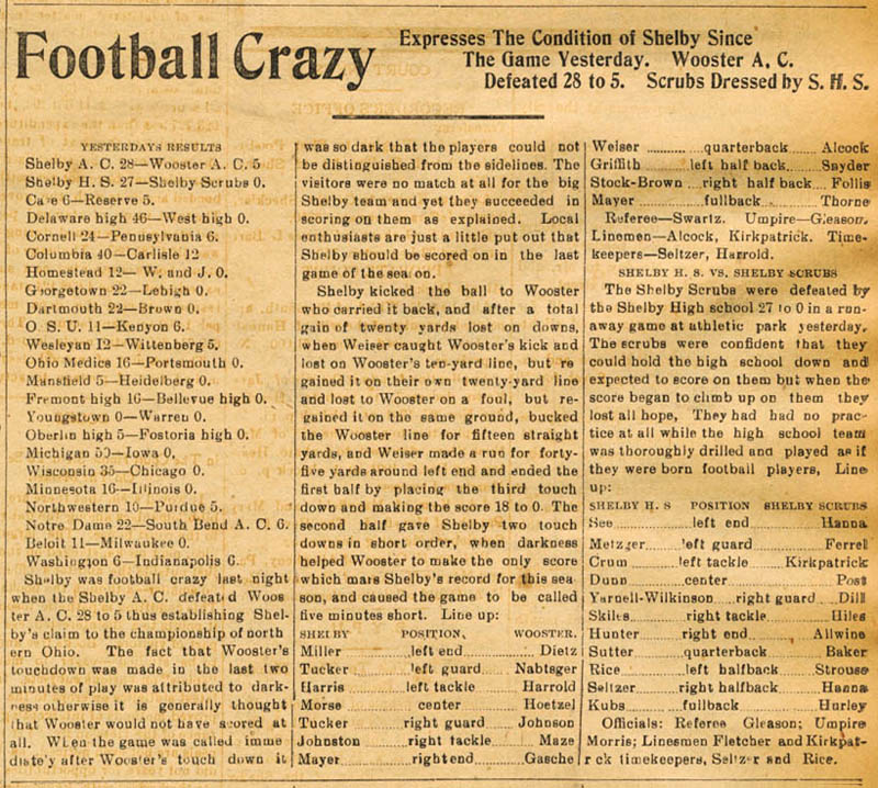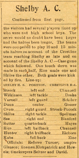 1901 Shelby High School starting line up was as follows: