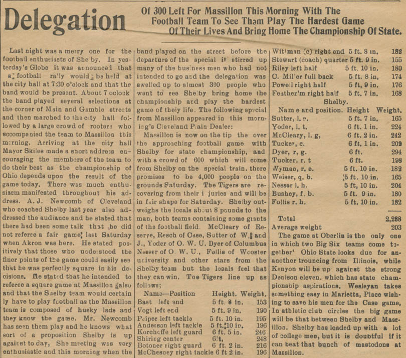 | Shelby Athletic Club | 0 | Massilion Tigers | 28 |